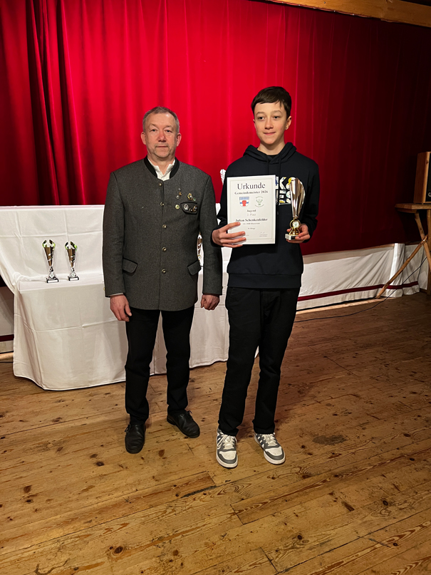 In der Wertung Gemeindemeister belegten in der Jugendklasse Julian Schenkenfelder mit 91 Ringen den zweiten Platz, in der Damenklasse Monika Musielik mit 96 Ringen ebenfalls den zweiten Platz, sowie Michael Eberl mit 96 Ringen den dritten Platz in der Schützenklasse.